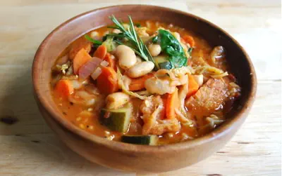 hearty, rustic soup is packed with vegetables, beans